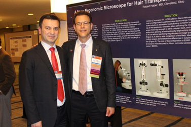 ![]() Aleksiy Makhrashvili contratutating Bernard Nusbaum on the prize, which was awarded to him for his commitment in the successful work of the journal "Hair Transplant Forum Internationale". |