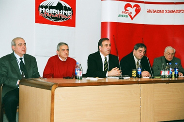 ![]() Press-conference. Prof. Shestoplatov, Prof. Kakabardze, Prof. T. Tamazashvili, Prof. G. Tomadze, Prof. B. Iashvili |
